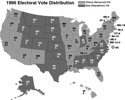 Let’s break down some key states. California, with its massive number of electoral votes, went to Clinton. Texas, a Republican stronghold, went to Dole. Florida, always a battleground, also went to Clinton. These states are crucial because they wield significant influence due to their large populations and electoral vote counts. Understanding how these key states voted provides valuable insights into the overall outcome of the election. In 1996 , California’s decision to support Clinton underscored the Democratic Party’s strength on the West Coast, while Texas’s preference for Dole highlighted the Republican Party’s dominance in the South. Florida’s status as a swing state added an element of unpredictability to the election, making it a focal point for both campaigns. The results in these key states reflected broader trends and shifts in voter preferences across the country. Analyzing the 1996 Electoral College map , it becomes clear that the distribution of electoral votes plays a crucial role in determining the outcome of presidential elections. The allocation of electoral votes based on population size means that some states have a disproportionate influence on the election results. This dynamic has been a subject of debate and discussion, with some advocating for reforms to ensure a more equitable distribution of political power. The 1996 election underscored the importance of targeting key states and tailoring campaign strategies to appeal to specific demographics and regional interests. The ability to mobilize voters and secure support in these key states is essential for any candidate seeking to win the presidency. As we delve deeper into the 1996 Electoral College map , we can appreciate the intricate interplay of political forces that shape the outcome of presidential elections.