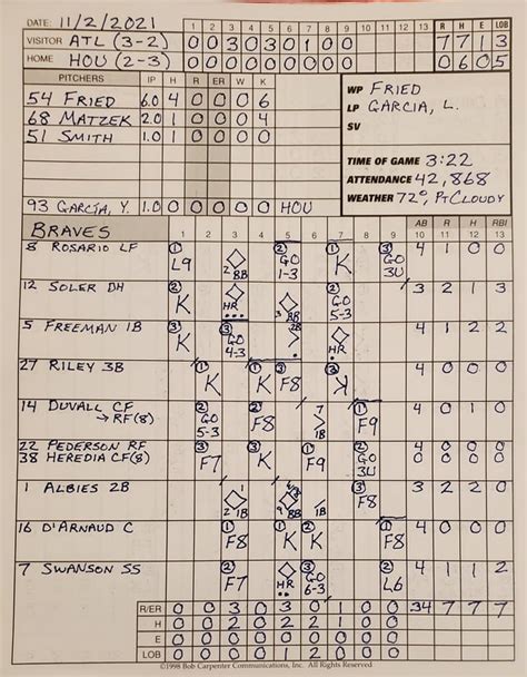 The starting pitchers, Max Fried for the Braves and Luis Garcia for the Astros, had the task of setting the tone. Both pitchers were expected to give their teams a solid outing. However, the game quickly turned into a battle of the bullpens, with key relievers playing a huge role in the outcome. The pressure was on, and the weight of the World Series was palpable. From the first pitch, it was evident that every single play would be scrutinized and analyzed by fans, coaches, and baseball analysts alike. The 2021 World Series was shaping up to be one for the ages, and Game 6 would play a defining role in deciding the champion. So, sit back, relax, and let’s unravel the thrilling details found within the box score .
