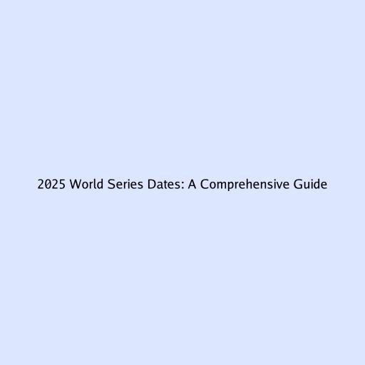 2025 World Series Dates: A Comprehensive Guide