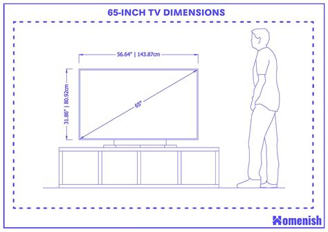 Oké, laten we eens kijken naar de cijfers. Gemiddeld genomen hebben 65-inch tv’s de volgende afmetingen. Let op: dit zijn gemiddelde waarden, dus controleer altijd de specificaties van het specifieke model dat je op het oog hebt!