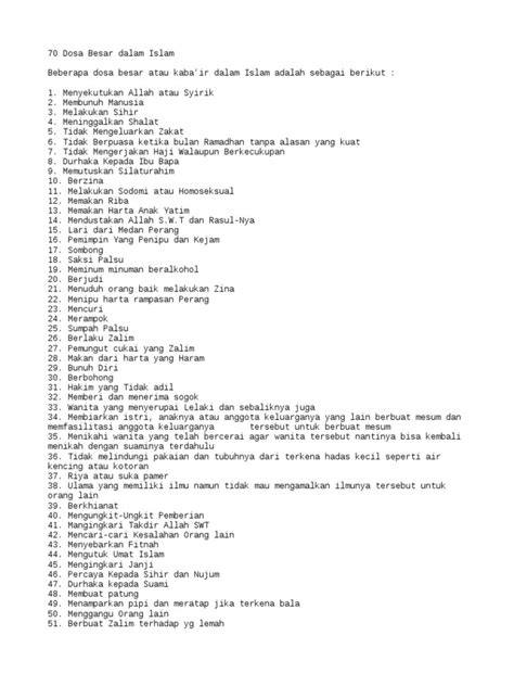 70 Dosa Besar: Panduan Lengkap
