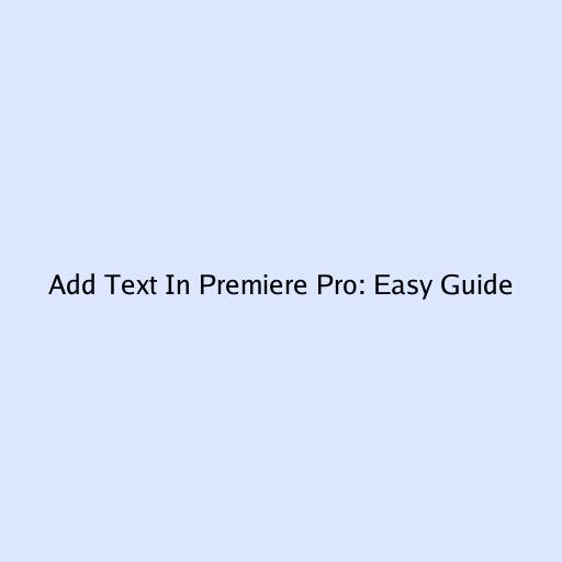 Add Text In Premiere Pro: Easy Guide