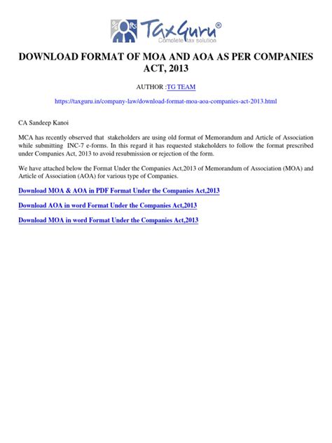Understanding the Articles of Association (AoA)