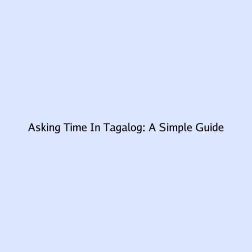 Asking About the Time in Tagalog: A Comprehensive Guide