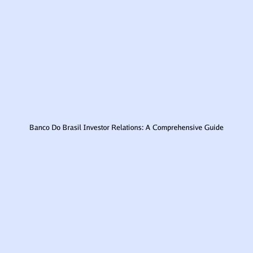 Banco Do Brasil Investor Relations: A Comprehensive Guide