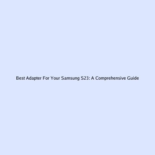 Best Adapter for Your Samsung S23: A Comprehensive Guide