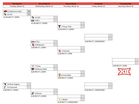 When we talk about the Big 12 basketball bracket 2024 , a few names immediately jump to the forefront as potential champions. These are the teams that have consistently shown up, week after week, dominating their opponents and proving their mettle. Think about Kansas , for instance. Even with a few hiccups here and there, they always seem to find a way to be in the mix, especially when March rolls around. Bill Self is a master of tournament play, and his Jayhawks are built for this kind of high-stakes environment. You can bet they’ll be a tough out for anyone. Then you have Houston . They’ve been a revelation in their first year in the Big 12, bringing that signature suffocating defense and an offensive efficiency that’s tough to match. Kelvin Sampson has built a perennial contender, and they are absolutely built for the grind of a conference tournament. Don’t count out Iowa State either. T.J. Otzelberger has this Cyclones team playing with an incredible amount of passion and defensive intensity. They’ve shown they can beat anyone, and their raucous home crowd translates into a dangerous road aura. These teams, guys, are the ones with the championship DNA. They have the talent, the coaching, and the experience to navigate the treacherous waters of the Big 12 tournament. We’re talking about squads that can lock down defensively, execute in clutch moments, and have players who can create their own shots when things get tough. The path to a Big 12 championship is never easy, but these are the programs that consistently find a way to rise to the occasion. Their regular season performance has undoubtedly put them in a strong seeding position, which is crucial for a deep tournament run. A top seed means fewer games against higher-ranked opponents early on, giving them a better chance to conserve energy and build momentum. However, the Big 12 has a knack for surprising upsets, so even the top seeds need to be prepared for a fight from the opening tip.