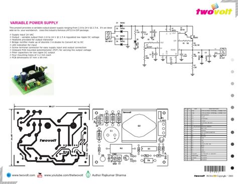 Alright, let’s get into the heart of our project: the schematic diagram! Think of this as the roadmap for building your LM723 variable power supply with overcurrent protection . It shows you exactly how all the components connect together to create a functional circuit. Don’t be intimidated if it looks complex at first – we’ll break it down step by step. A schematic diagram is a symbolic representation of an electronic circuit. It uses standardized symbols to represent components like resistors, capacitors, integrated circuits, and power sources, and lines to represent the connections between them. Understanding how to read a schematic is a fundamental skill for any electronics enthusiast, and it’s essential for building and troubleshooting circuits. The LM723 datasheet is your best friend when it comes to understanding the specific connections for this IC. The datasheet provides detailed information about the pin functions, internal circuitry, and recommended operating conditions. You can usually find the datasheet online by searching for “LM723 datasheet.” Now, let’s go through the key sections of the schematic for our variable power supply. First, we have the input stage, which typically consists of a transformer, a bridge rectifier, and filter capacitors. The transformer steps down the AC voltage from the mains outlet to a lower AC voltage, which is then converted to DC voltage by the bridge rectifier. The filter capacitors smooth out the pulsating DC voltage, providing a cleaner DC input for the LM723. Next, we have the LM723 regulator circuit itself. This section includes the LM723 IC, resistors, capacitors, and a potentiometer. The resistors are used to set the output voltage range and current limit, while the potentiometer allows you to adjust the output voltage. The capacitors provide stability and decoupling for the circuit. The LM723 uses a feedback mechanism to regulate the output voltage. It constantly monitors the output voltage and adjusts its internal circuitry to maintain the desired voltage level. This feedback loop is crucial for providing a stable and accurate output voltage, even when the input voltage or load current changes. The overcurrent protection circuit is a critical part of our design. It typically consists of a current sense resistor and a few additional components connected to the LM723. The voltage drop across the current sense resistor is proportional to the output current, and this voltage is used by the LM723 to detect an overcurrent condition. When an overcurrent is detected, the LM723 shuts down the output, protecting the power supply and the connected circuit from damage. When looking at the schematic, pay close attention to the pin numbers on the LM723 IC. Each pin has a specific function, and connecting components to the wrong pins can prevent the circuit from working or even damage the IC. The schematic will also show the voltage and current ratings for key components, such as the transformer and rectifier diodes. It’s important to choose components that can handle the expected voltage and current levels in the circuit. It is good practice to build your power supply on a breadboard first to test the circuit before soldering the components onto a perfboard. This allows you to easily make changes and troubleshoot any issues. Once you are confident that the circuit is working correctly, you can transfer it to a more permanent perfboard or printed circuit board (PCB). Schematics are the language of electronics, guys! Once you get comfortable reading them, you’ll be able to understand and build all sorts of amazing circuits. So, take your time, study the schematic carefully, and don’t be afraid to ask questions if you get stuck. Now, let’s move on and discuss the construction process.