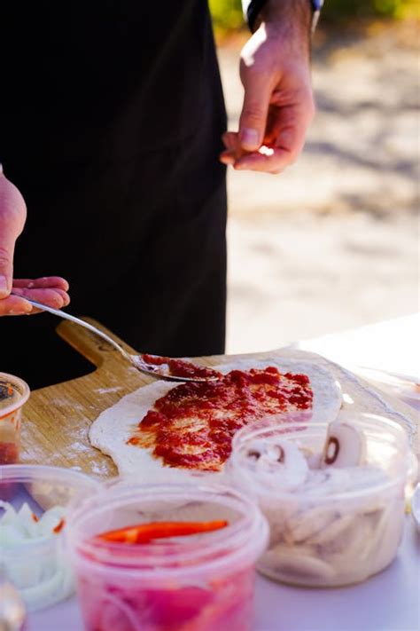 5. Add the Toppings: Spread a thin layer of sauce over the dough, leaving a small border for the crust. Add your desired toppings, starting with the cheese and then layering on the vegetables, meats, and herbs. Be careful not to overload the pizza, as this can make it difficult to cook properly.