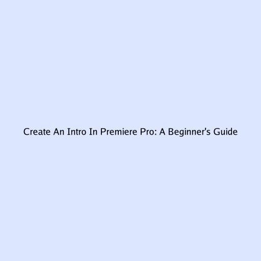 Create an Intro in Premiere Pro: A Beginner’s Guide