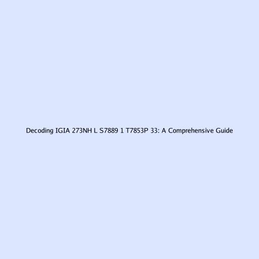Decoding IGIA 273NH L S7889 1 T7853P 33: A Comprehensive Guide