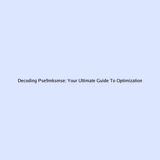 Decoding pse9mksmse: Your Ultimate Guide to Optimization