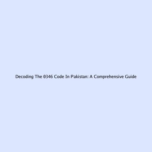 Decoding The 0346 Code In Pakistan: A Comprehensive Guide
