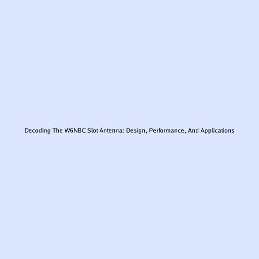 Decoding The W6NBC Slot Antenna: Design, Performance, And Applications