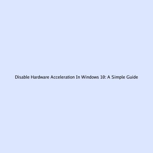 Disable Hardware Acceleration In Windows 10: A Simple Guide