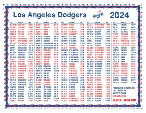 • Official League Website: Depending on which league Dodgers SC participates in, the official league website will also list the game schedule. This is particularly useful for confirming game times and dates and seeing where Dodgers SC fits within the broader league context. League websites often provide comprehensive season schedules, standings, and other relevant information. By cross-referencing the league website with the team’s official site, you can ensure that you have a complete and accurate picture of the game schedule.