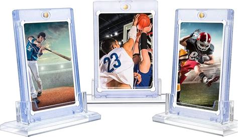 Multi-card displays are designed to hold multiple cards in a single frame or case. These displays are ideal for showcasing sets, themes, or related groups of cards. They come in various configurations, from rows of individual card slots to larger display cases with multiple shelves or compartments. Multi-card displays can be a great way to tell a story with your collection or to showcase the evolution of a particular player or set.