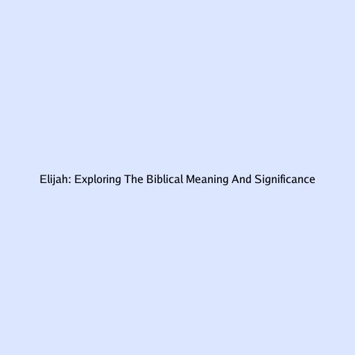 Elijah: Exploring The Biblical Meaning And Significance