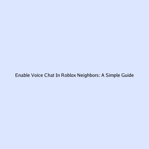 Enable Voice Chat in Roblox Neighbors: A Simple Guide