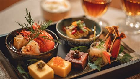 One of the most striking aspects of a Kaiseki meal is its presentation. Each dish is a work of art, carefully arranged and garnished to appeal to the eye. The serving ware is also thoughtfully chosen, with different shapes, colors, and textures used to complement the food. The goal is to create a harmonious and visually stunning experience that enhances the flavors of the meal. The arrangement of the food on the plate is not random. It is carefully considered to create balance, harmony, and visual interest. Chefs often use techniques like layering, stacking, and arranging ingredients in specific patterns to create a sense of depth and dimension. Garnishes play a crucial role in the presentation of Kaiseki dishes. They are not just decorative; they are carefully chosen to complement the flavors and textures of the dish. Common garnishes include edible flowers, herbs, and finely julienned vegetables. The serving ware used in Kaiseki meals is just as important as the food itself. Different types of dishes, bowls, and plates are used to showcase each course. The colors, shapes, and textures of the serving ware are carefully selected to complement the food and create a visually appealing presentation. The overall goal of the presentation is to create a sense of harmony and balance. The food, serving ware, and garnishes should all work together to create a visually stunning and memorable dining experience. This attention to detail is what sets Kaiseki apart from other types of cuisine and makes it a true art form. It’s all about creating an experience that is as pleasing to the eye as it is to the palate. So, when you’re enjoying a Kaiseki meal, take a moment to appreciate the artistry and craftsmanship that goes into each and every dish. It’s a feast for the senses!
