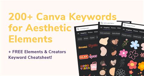 Alright, let’s arm you with some power keywords that can instantly level up your Canva game. These are terms that often unlock unique and interesting elements that you might not find with more basic searches. Ready to take notes ?