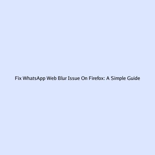Fix WhatsApp Web Blur Issue on Firefox: A Simple Guide