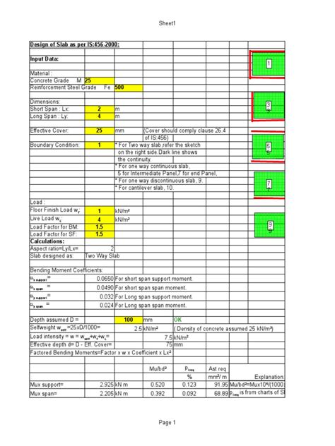 Okay, so now you’re probably thinking, “Where can I get my hands on one of these magical Excel sheets?” Well, I’ve got you covered! There are several websites and online resources that offer free two-way slab design Excel sheets. However, it’s important to exercise caution when downloading files from the internet, as they may contain viruses or malware. Always scan downloaded files with a reputable antivirus program before opening them. Additionally, make sure to verify the accuracy of the Excel sheet by comparing its results with hand calculations or other design software. This will ensure that the sheet is reliable and that you can trust its results. A great starting point is to search reputable engineering forums and websites that often share resources like this for free.