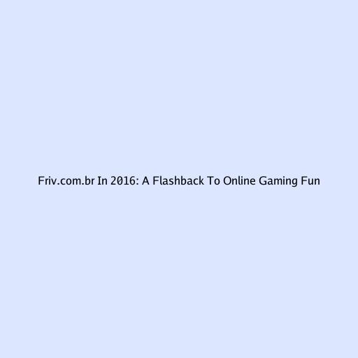 Friv.com.br in 2016: A Flashback to Online Gaming Fun