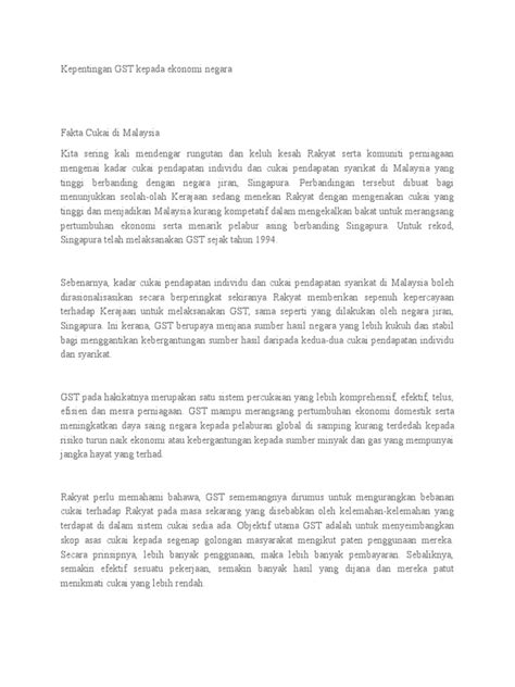 So, guys, dah sampai ke penghujung perbincangan kita tentang kebaikan GST kepada ekonomi negara . Walaupun mungkin ada yang masih rasa tak puas hati atau ada pandangan yang berbeza, saya harap artikel ni dapat bagi korang gambaran yang lebih jelas tentang kenapa GST ni penting. Secara ringkasnya, GST ni bukan sekadar cukai biasa. Ia adalah satu mekanisme yang direka untuk meningkatkan hasil kerajaan secara mampan , menggalakkan ketelusan dalam urus niaga , dan mengurangkan ketidakadilan dalam sistem percukaian . Hasil tambahan yang diperoleh kerajaan dapat disalurkan kembali kepada rakyat dalam bentuk peningkatan perkhidmatan awam dan projek pembangunan yang kita semua dapat nikmati. Ia juga membantu mengekalkan kestabilan ekonomi negara dalam jangka masa panjang. Ingatlah, setiap cukai yang dibayar oleh rakyat, termasuklah GST, adalah pelaburan kita untuk masa depan negara . Tanpa hasil cukai yang mencukupi, macam mana negara kita nak maju, nak sediakan kemudahan yang baik, nak jaga kebajikan rakyat? Jadi, walaupun kadang-kadang nampak macam membebankan, penting untuk kita faham peranan GST dalam memastikan ekonomi negara kita terus berkembang dan memberikan kehidupan yang lebih baik untuk kita semua. Teruskan menyokong usaha kerajaan dalam membangunkan negara kita ya!