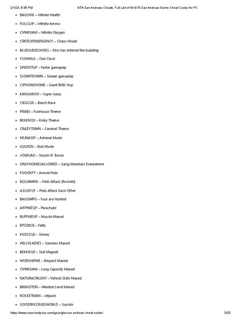 Okay, let’s get to the good stuff – the cheat codes themselves! Here are some of the most popular and useful cheat codes for getting through those tough missions in GTA San Andreas: