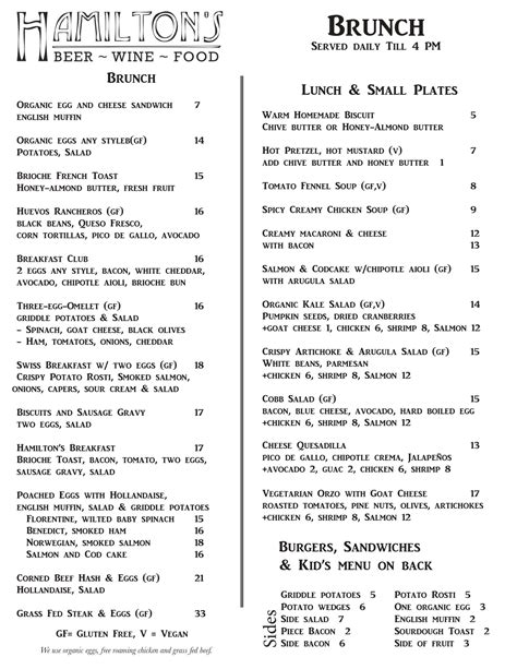 No meal is complete without the perfect beverage, and the drinks selection on the Hamilton Street Public House menu is designed to perfectly complement your food and enhance your overall dining experience. Guys, they’ve really thought of everything! Whether you’re looking for a classic pub pint, a sophisticated cocktail, or a refreshing non-alcoholic option, the Hamilton Street Public House menu has a fantastic array to choose from. Let’s talk about the beer selection first. As a public house, you can expect a well-curated list of beers on tap and in bottles, likely featuring local craft brews alongside popular domestic and imported favorites. Whether you prefer a crisp lager, a hoppy IPA, a rich stout, or a refreshing wheat beer, there’s a pint here that will hit the spot. The Hamilton Street Public House menu takes pride in offering a diverse beer selection that caters to all tastes. Moving on to cocktails , they’re likely mixing up some creative and classic concoctions. Imagine sipping on a perfectly balanced Old Fashioned, a zesty Margarita, or perhaps a refreshing Mojito. They might also have their own signature cocktails, unique to Hamilton Street Public House, that showcase their flair and creativity. These are perfect for adding a touch of celebration to your meal. For those who prefer wine , the Hamilton Street Public House menu usually offers a thoughtful selection by the glass and by the bottle, featuring both red and white varieties that pair well with their food offerings. You’ll likely find options that range from light and crisp to full-bodied and robust. And let’s not forget about the non-alcoholic options ! They understand that not everyone drinks alcohol, and they provide excellent choices to keep everyone refreshed. Think about artisanal sodas, fresh juices, specialty coffees and teas, and mocktails that are just as exciting as their alcoholic counterparts. The Hamilton Street Public House menu aims to provide a complete beverage experience, ensuring that your drink is as enjoyable as your meal. So, whether you’re raising a glass to celebrate, unwinding after a long day, or simply enjoying a meal with friends, the drinks menu at Hamilton Street Public House has the perfect pour for you. It’s all about enhancing your enjoyment and providing a truly complete dining experience. Cheers to that!