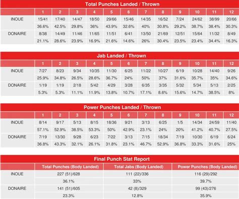 To truly appreciate the Inoue vs. Donaire 2 CompuBox stats, we need to break it down round by round. While the final result is what matters most, looking at the punch statistics for each round can reveal critical moments and shifts in momentum. Did one fighter dominate certain rounds with a flurry of punches, only for the other to come back strong in the next? Understanding the round-by-round breakdown helps us see how the fight unfolded and when certain strategies were more effective. For instance, if Inoue consistently out-landed Donaire in the early rounds, it suggests he came out with a clear game plan and executed it effectively from the start. Conversely, if Donaire had strong middle rounds, it might indicate he adjusted well or found a rhythm against Inoue’s pressure. The CompuBox data can highlight periods where one fighter seemed to have a significant advantage, perhaps landing a higher percentage of punches or a barrage of power shots. This can correlate with the visual impression of who was landing the cleaner, more damaging punches. We’ll be looking at the total punches landed, jab effectiveness, and power punch accuracy within specific rounds. Were there any rounds where Donaire significantly outworked Inoue, perhaps reminiscent of their first fight? Or was it a more consistent performance from Inoue throughout? This granular view provided by the Inoue vs. Donaire 2 CompuBox round-by-round stats is invaluable for fight analysts and fans alike, offering a deeper appreciation for the tactical battles within the larger war. It tells the story of the fight’s ebb and flow, showcasing the adjustments and resilience of both incredible boxers.