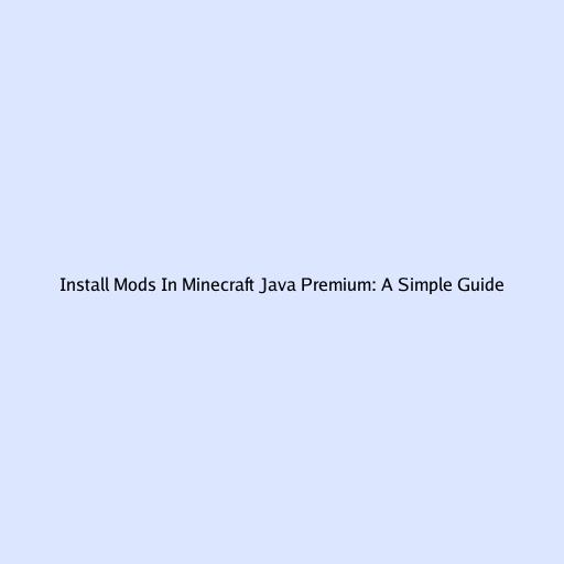 Install Mods In Minecraft Java Premium: A Simple Guide