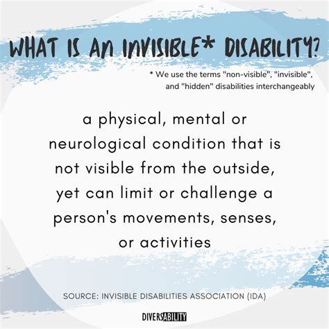 The impact of these conditions can be far-reaching. Individuals with invisible disabilities may struggle to maintain employment, participate in social activities, or even perform basic daily tasks. They might require accommodations at work or school but face skepticism or resistance due to the lack of visible evidence. The constant need to explain and justify their condition can be emotionally exhausting, leading to increased stress and mental health challenges. Moreover, the lack of understanding from others can create barriers to accessing support and resources. It’s essential to remember that just because you can’t see a disability doesn’t mean it doesn’t exist or that it’s any less real.