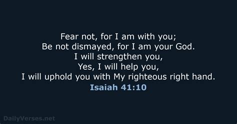 So, what exactly does Isaiah 41:10 say? The most common English translation reads: “So do not fear, for I am with you; do not be dismayed, for I am your God. I will strengthen you and help you; I will uphold you with my righteous right hand.” Right off the bat, we see a direct command: “Do not fear.” This is repeated with “do not be dismayed.” These aren’t suggestions; they are divine directives given to us by a God who knows our hearts and understands the anxieties that plague us. Why? Because He follows it up with the incredible truth: “for I am with you.” This presence is the ultimate antidote to fear. When we know God is right there beside us, walking through every trial, fear loses its grip. It’s like having the ultimate bodyguard, but infinitely more powerful and loving. He doesn’t promise a life free from challenges, but He absolutely promises His presence through those challenges. Think about that. When you’re facing a tough situation, a difficult decision, or just feeling the weight of the world, remember this promise. God is with you. You are not alone. The promise continues, “I am your God.” This isn’t a casual acquaintance; it’s a profound, covenantal relationship. He has chosen us, set His love upon us, and declared us His own. This declaration means everything is different. His power is available to us, His wisdom is there to guide us, and His love is an unending source of strength.