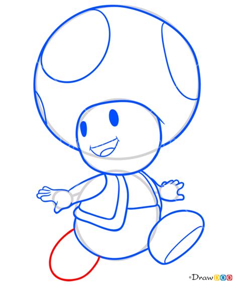 • Focus on Shapes: Break down Toad’s body into simple shapes (circles, ovals, cylinders) to make it easier to draw. Build the more complex details from these simple foundations.