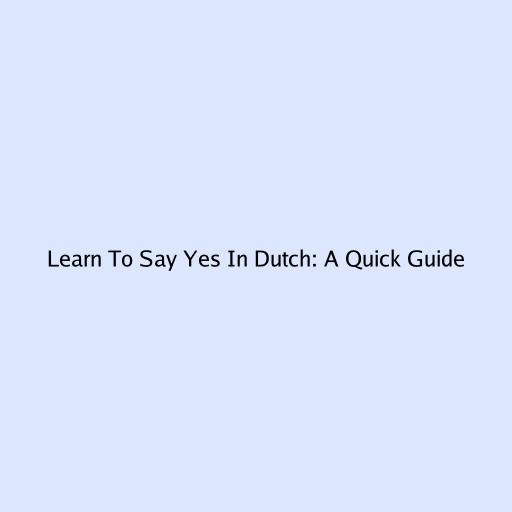 Learn To Say Yes In Dutch: A Quick Guide