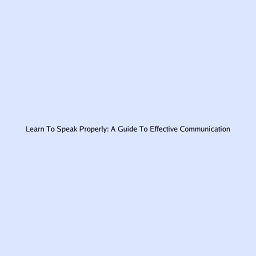 Learn to Speak Properly: A Guide to Effective Communication