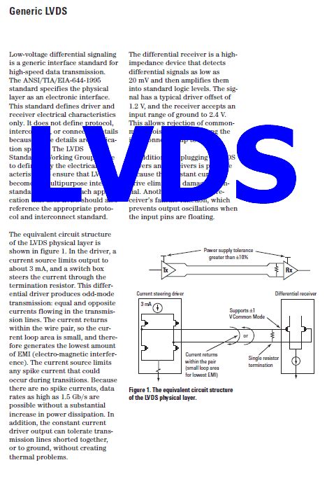 So, what exactly is LVDS , and why should you care about its datasheet? At its heart, Low-Voltage Differential Signaling (LVDS) is a technology designed for high-speed digital interfaces. Think of it as a super-fast, super-reliable way to send data between different parts of a system, especially over longer distances or in noisy environments. Unlike single-ended signaling, where data is sent relative to a common ground, LVDS uses a pair of wires. A small, constant current is driven across this pair, creating a voltage difference. This differential nature is the secret sauce, making it incredibly resistant to electromagnetic interference (EMI) and ground noise. This means your data stays clean and accurate, even when things get a bit chaotic electrically. When you’re dealing with high data rates, like those found in display interfaces (think HDMI, DisplayPort, or even the internal connections in your laptop screen), video streaming, or high-performance networking, LVDS is often the unsung hero. The datasheet is your bible here; it contains all the critical electrical characteristics, timing parameters, and physical specifications that dictate how well an LVDS component will perform in your specific application. Ignoring it is like trying to build a spaceship without a blueprint – a recipe for disaster, guys!