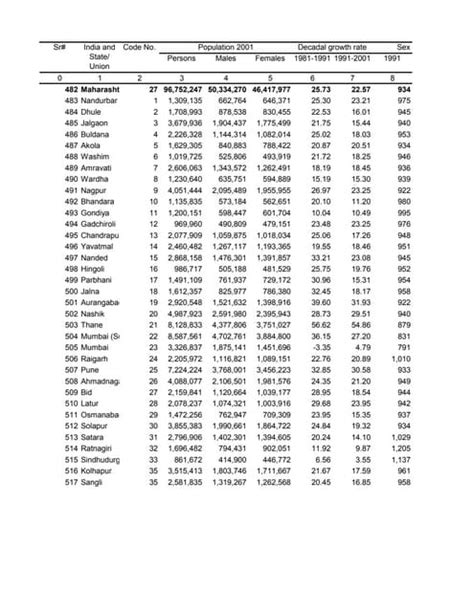 Wrapping things up, let’s consider the implications and future projections based on the 2011 Census data for Maharashtra. Understanding the demographic trends revealed by the census is crucial for planning and policy-making in the years to come. For example, the state’s large population size and high population density have significant implications for infrastructure development, resource allocation, and environmental sustainability. Policymakers need to invest in infrastructure such as roads, water supply, and sanitation to meet the needs of a growing population. They also need to manage resources sustainably to ensure that future generations have access to clean air, water, and land. Furthermore, the state’s urbanization trend is likely to continue in the coming years, as more and more people move from rural areas to cities in search of better opportunities. This will put additional pressure on urban infrastructure and services, highlighting the need for smart urban planning and sustainable development strategies. Policymakers need to promote compact, walkable, and transit-oriented development to reduce traffic congestion, improve air quality, and enhance the quality of life in cities. In addition to urbanization, the state’s aging population is another trend that needs to be addressed. As the population ages, there will be a greater demand for healthcare services,养老金, and social security benefits. Policymakers need to strengthen the healthcare system, expand access to养老金, and promote active aging to ensure that older adults can live healthy, productive, and fulfilling lives. Finally, it’s important to monitor the state’s sex ratio and take steps to address gender inequality. This includes promoting education and empowerment for women and girls, as well as enforcing laws that prohibit gender-based discrimination and violence. By addressing these demographic challenges and opportunities, Maharashtra can build a more prosperous, equitable, and sustainable future for all its residents. The 2011 Census provides a valuable snapshot of the state’s population, but it’s just the starting point. Policymakers need to continue to collect and analyze data to inform decision-making and ensure that policies are aligned with the needs of the population.