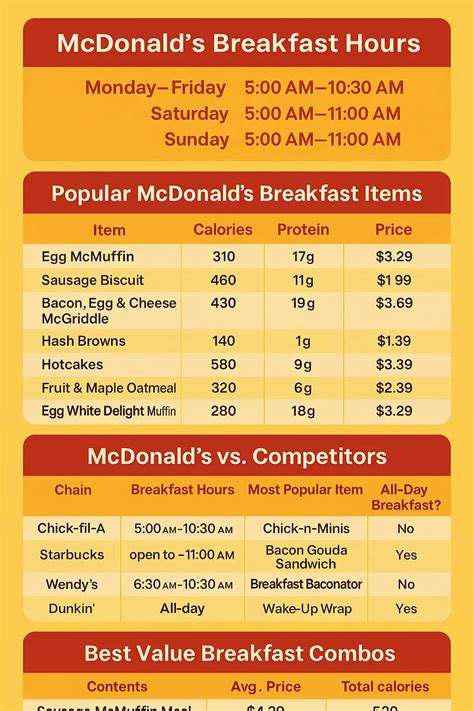 So there you have it, guys ! A comprehensive guide to McDonald’s breakfast hours, menu items, and helpful tips. Now you know when to expect breakfast, what to order, and how to make the most of your visit. So, whether you’re craving a Sausage McMuffin with Egg or a stack of hotcakes, you’re now well-equipped to enjoy a delicious McDonald’s breakfast. Go forth and enjoy your golden arches adventure! Remember to always check your local restaurant’s hours, and happy eating!
