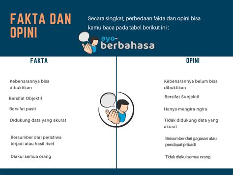 Halo, guys! Pernah nggak sih kalian lagi ngobrol sama temen terus ada yang bilang, “Menurut gue sih…” atau “Kayaknya ya…” Nah, kata-kata kayak gitu itu udah masuk ke ranah opini, lho! Tapi, apa sih sebenarnya opini itu? Dan gimana bedanya sama fakta? Yuk, kita kupas tuntas biar kalian makin jago bedain mana yang opini, mana yang fakta.