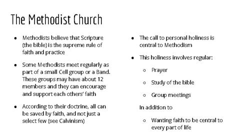 In conclusion, the Methodist Church has a rich history, a distinctive set of beliefs, and a significant impact on society. From its humble beginnings in 18th-century England, Methodism has grown into a global movement that is committed to spreading the Gospel, promoting social justice, and making a positive difference in the world. Its emphasis on personal salvation, social action, and education has inspired countless individuals to live lives of faith and service. As the Methodist Church continues to evolve and adapt to the challenges of the 21st century, it remains committed to its core values and its mission to transform the world for the sake of Jesus Christ.