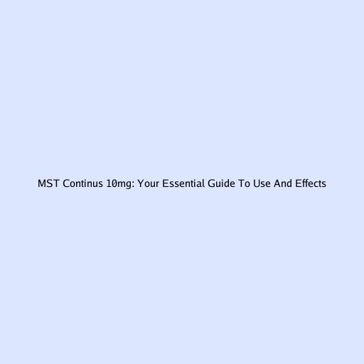 MST Continus 10mg: Your Essential Guide to Use and Effects\n\nHey there, guys! If you’re looking for information about MST Continus 10mg , you’ve landed in the right spot. We know dealing with pain can be tough, and understanding your medication is super important. So, let’s dive deep into what MST Continus 10mg is all about, how it works, who it’s for, and everything else you need to know to feel empowered and informed. We’re going to break it down in a friendly, easy-to-understand way, making sure you get the most valuable insights into this important medication. Our goal here is to provide you with a comprehensive resource that goes beyond just the basics, offering practical advice and crucial warnings in a tone that feels natural and conversational. So, grab a coffee, get comfy, and let’s explore the world of MST Continus 10mg together, ensuring you’re well-equipped with knowledge to discuss your treatment with your healthcare provider. This isn’t just about facts; it’s about making sure you understand what’s going on with your body and your medication, empowering you to be an active participant in your pain management journey. We’ll be covering everything from its active ingredient to how to handle potential side effects, all while keeping the language accessible and focusing on what truly matters for your well-being. This guide is designed to be your go-to resource for a deeper understanding of MST Continus 10mg, helping you navigate your treatment with confidence and clarity.\n\n## What Exactly is MST Continus 10mg?\n\n MST Continus 10mg is a powerful medication specifically designed to manage moderate to severe chronic pain that requires continuous, around-the-clock treatment. When we talk about MST Continus 10mg , we’re referring to an extended-release formulation of morphine sulfate, which is a potent opioid analgesic. This isn’t just your average painkiller, folks; it’s a medication that works by releasing its active ingredient slowly over time, providing sustained pain relief. Think of it like a steady drip, rather than a quick burst, which is absolutely crucial for managing persistent pain that doesn’t just come and go. The ‘Continus’ part of the name is a big hint here—it stands for continuous release , meaning the medication gradually disperses into your system over 12 hours. This sustained action is what makes MST Continus 10mg so effective for people who need ongoing relief from pain that significantly impacts their daily lives. Unlike immediate-release pain medications that you might take every few hours, this particular formulation is designed to keep a more stable level of medicine in your body, helping to prevent those frustrating peaks and troughs in pain control. This steady state helps to improve quality of life for many patients dealing with conditions like cancer pain, severe neuropathic pain, or other forms of chronic pain that haven’t responded adequately to less potent analgesics. Understanding this extended-release mechanism is key, because it dictates how you should take the medication—it’s never meant to be crushed, chewed, or dissolved, as doing so would release the entire dose at once, potentially leading to serious side effects. So, when your doctor prescribes MST Continus 10mg , they’re looking for a consistent, reliable way to keep your pain under control, allowing you to function better throughout the day and even get a more restful night’s sleep. It’s a serious medication, requiring careful prescription and monitoring, but for the right patient, it can be a real game-changer in managing persistent, debilitating pain. Always remember that MST Continus 10mg is part of a broader pain management plan, and its use should always be guided by a healthcare professional who understands your specific needs and medical history. The 10mg dosage refers to the amount of morphine sulfate in each tablet, and your doctor will determine the appropriate strength and frequency for your individual pain profile, always starting with the lowest effective dose to minimize potential risks while maximizing relief. This comprehensive approach ensures that you’re getting the most out of your MST Continus 10mg while staying as safe as possible.\n\n## How Does MST Continus 10mg Work Its Magic?\n\nEver wondered how MST Continus 10mg actually helps to quell that nagging pain? It’s pretty fascinating, guys! The active ingredient in MST Continus 10mg is morphine sulfate , which belongs to a class of drugs known as opioid analgesics. Now, without getting too technical, here’s the gist: our bodies have these natural receptors, called opioid receptors, primarily located in the brain, spinal cord, and even in the gut. These receptors are like tiny locks, and morphine is the key. When MST Continus 10mg is taken, the morphine travels through your bloodstream and binds to these opioid receptors. When it latches on, it essentially changes the way your brain and central nervous system perceive pain. Instead of blocking the pain source , it blocks the signal that tells your brain, ‘Hey, something hurts here!’ This results in a significant reduction in the feeling of pain. What makes MST Continus 10mg particularly effective for chronic pain management is its extended-release mechanism . Imagine a special delivery system within the tablet itself. This system is designed to release small, steady amounts of morphine over a period of about 12 hours. This isn’t like a quick-acting painkiller that hits hard and then fades fast. Instead, you get a consistent, smooth flow of relief throughout the day and night. This continuous release is absolutely vital for someone dealing with persistent pain, because it helps to maintain a stable level of the medication in your body, preventing the pain from breaking through between doses. Without this steady release, you’d constantly be battling the return of pain, which can be exhausting and debilitati
