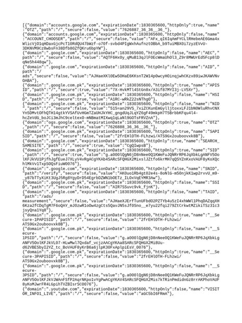 , that contains a list of cookies. Each cookie is represented on a separate line, with fields separated by tabs or spaces. The structure of each line typically follows this format: