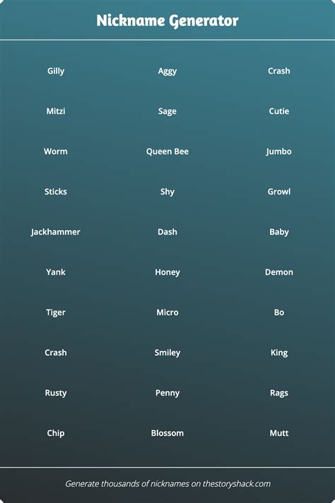 Alright, so you’ve brainstormed, you’ve thought about your interests and personality, but you’re still stuck? No worries! That’s where nickname generators come in handy. These awesome tools can help spark your creativity and give you a ton of ideas to choose from. A nickname generator is basically a software program or website that creates random nicknames based on certain criteria. Some generators allow you to specify your interests, hobbies, or even your gender, while others simply generate random names based on a set of rules.