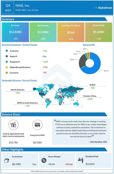 Alright, let’s switch gears and talk about product category performance . Nike offers a wide range of products, including footwear, apparel, and equipment. The performance of each category can provide valuable insights into consumer preferences and market trends. Are people buying more shoes than apparel, or vice versa? Which specific product lines are driving growth? For example, if running shoes are selling like crazy, that could indicate a growing interest in fitness and outdoor activities. On the other hand, if basketball gear is lagging, it might suggest a shift in sports participation or fashion trends. Also, it’s important to consider how Nike’s innovation and product development efforts are paying off. Are new product launches generating excitement and driving sales? Are Nike’s technologies, like Air Max or Flyknit, still resonating with consumers? The performance of each product category can also vary by region. What’s popular in North America might not be as popular in Asia or Europe. Understanding these differences can help Nike tailor its product offerings to meet local demands. So, when we’re analyzing Nike’s earnings, it’s crucial to break down the performance of each product category to get a comprehensive view of what’s working and what’s not.