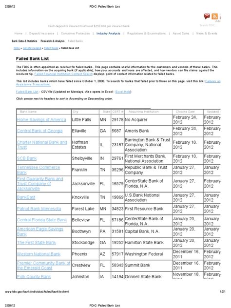 Alright guys, let’s get down to brass tacks. The OSC FDIC Failed Bank List , often just referred to as the FDIC’s list of failed banks, is precisely what it sounds like: a comprehensive record maintained by the Federal Deposit Insurance Corporation (FDIC) detailing all the banks that have been closed or, in regulatory terms, failed since the FDIC’s inception. Think of it as a historical ledger of financial closures. Now, when we say a bank has “failed,” it doesn’t mean your money vanished into thin air. It means the bank’s management and board of directors could no longer keep it solvent, and state or federal regulators stepped in to close its doors. This is where the FDIC swoops in like a superhero. Their primary mission is to protect depositors against the loss of their insured deposits if an FDIC-insured bank or savings association fails. The OSC FDIC Failed Bank List serves as a public record of these closures, providing transparency about the health and stability of the banking sector over time. It’s a crucial tool for researchers, financial institutions, and even curious consumers who want to understand the history of banking in the United States. Each entry on the list typically includes the name of the failed bank, its location, the date of closure, and often information about how the FDIC resolved the failure – for instance, if another bank acquired its deposits and branches. This resolution process is key because it ensures that depositors’ funds remain safe. The FDIC insures deposits up to $250,000 per depositor, per insured bank, for each account ownership category. So, if you had money in a failed bank, and it was within these limits, the FDIC guarantees you’ll get it back. The OSC FDIC Failed Bank List can seem a bit daunting at first glance, showing a number of institutions that have ceased to operate. However, it’s essential to view this list in the context of the tens of thousands of FDIC-insured banks that have operated successfully for decades. The FDIC’s existence and its robust resolution process are precisely why bank runs are far less common today than they were in pre-FDIC eras. The list isn’t meant to incite panic; rather, it’s a data set reflecting the dynamic nature of the financial industry and the FDIC’s role in managing its risks and protecting the public. It also allows the FDIC to track patterns, identify potential systemic issues, and continuously improve its regulatory and supervisory practices. So, while the name might sound alarming, the OSC FDIC Failed Bank List is fundamentally a record of the FDIC successfully doing its job: safeguarding your deposits when the unexpected happens. It’s a historical document that underscores the reliability of the FDIC insurance system.