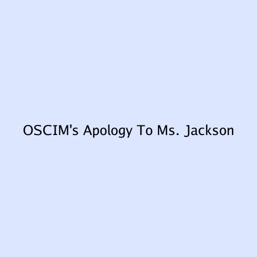 OSCIM’s Apology to Ms. Jackson