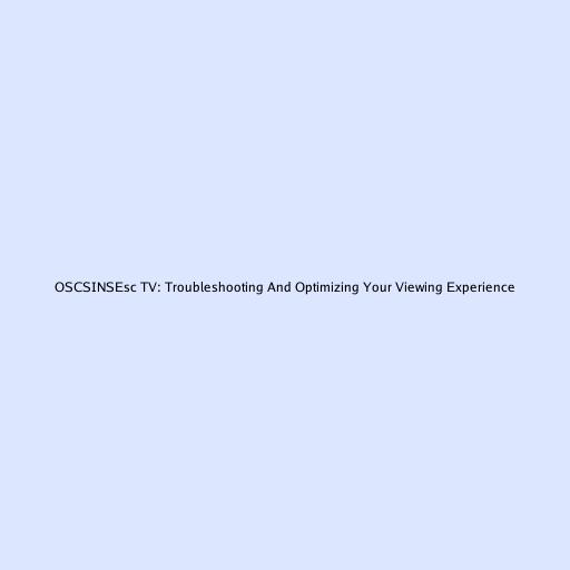 OSCSINSEsc TV: Troubleshooting And Optimizing Your Viewing Experience